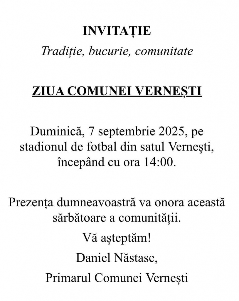 Primăria VERNEȘTI a semnat săptămâna aceasta Protocolul cu Consiliul Județean Buzău și CNAIR în vederea construirii unui pasaj pe DN 10, peste calea ferată din Vernești și a unei centuri ocolitoare cu scopul eliminarii trecerii la nivel de cale ferată pentru creșterea siguranței rutiere în zonă, reducerea numărului de accidente și decongestionarea traficului rutier.